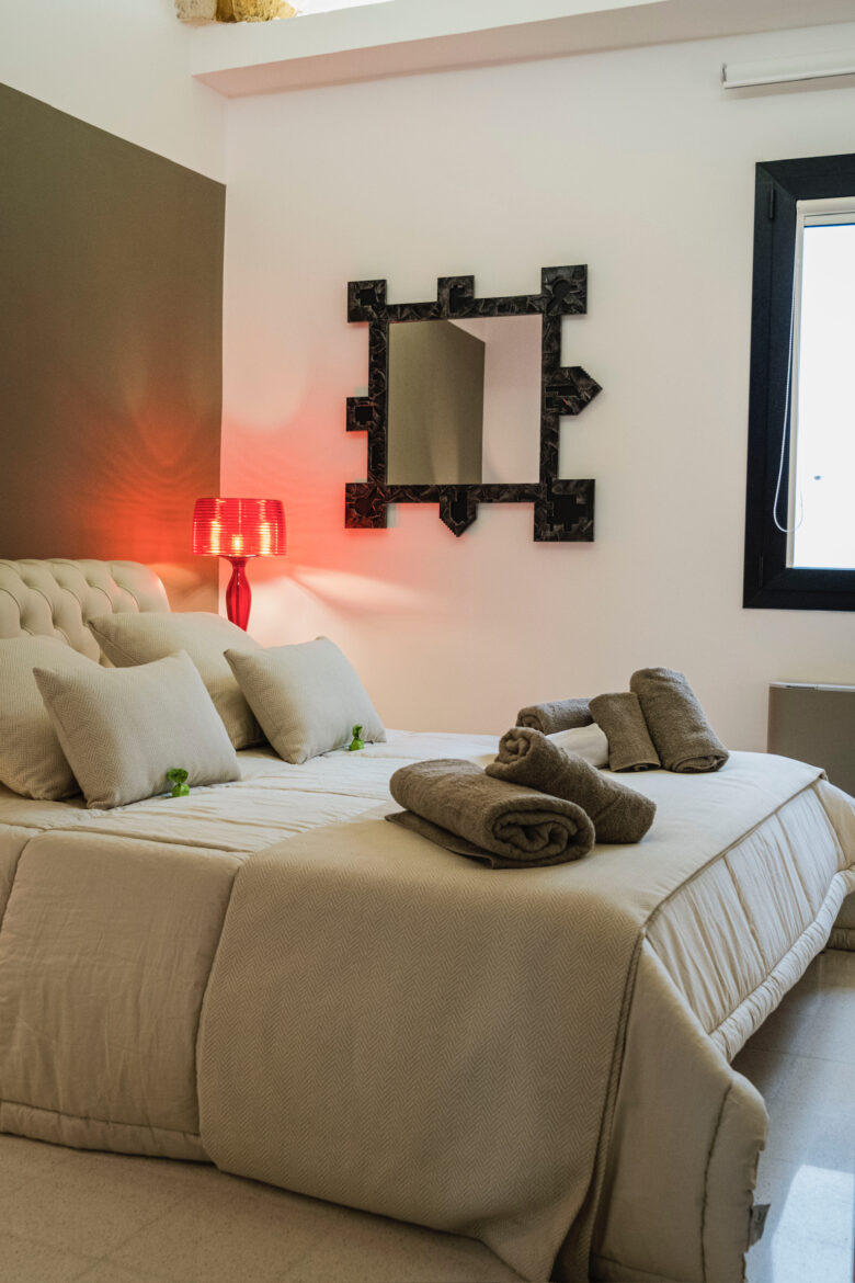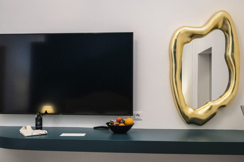 A high-ceiling, unique twenty-five meters space, boasting modern looks with a large private bathroom, smart tv, mini bar, security box, vanity area, fine Italians linens, robes, and all the trinkets complete with products Grown Alchemists in the private bathroom.